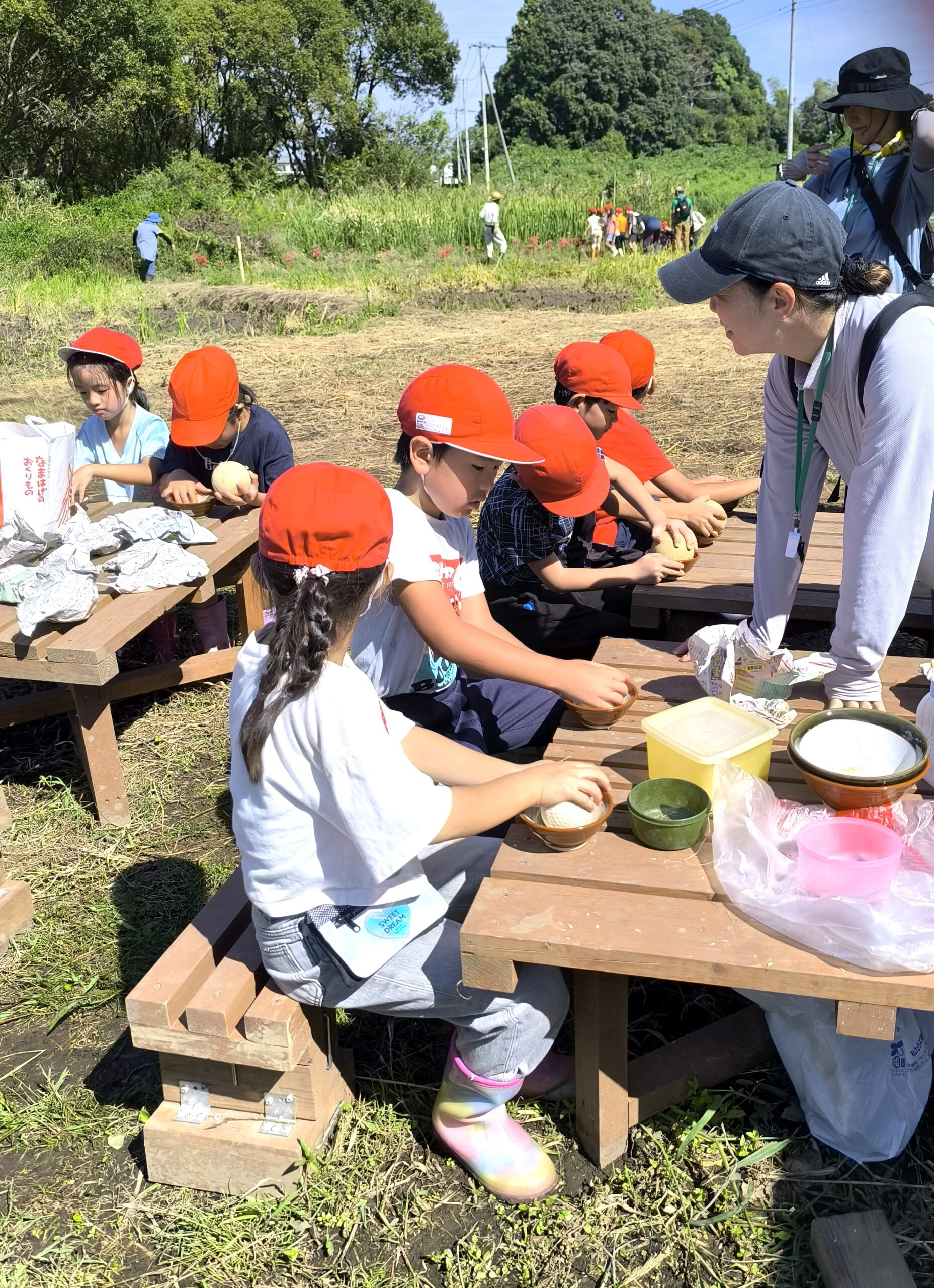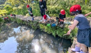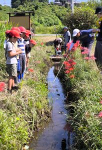 2025年9月27日 / 最終更新日時 : 2025年9月27日 fukuちゃん イベント 秋の里山で自然体験!(立沢里山) 総勢39名の松前台小学校の児童が、里山での課外活動に訪れてくれました。稲刈りを終えた田んぼでは、たくさんのトンボや羽根の美しいアゲハ蝶が舞い、巣を張る大きな蜘蛛の姿も見られました。児童たちは里山を巡りながら、生き物との出会いを楽しみました。 その後、班に分かれての活動では、笹舟流し、籾摺り体験、ザリガニ釣り、さらにメダカやオタマジャクシすくいなど、さまざまな自然体験を行いました。 わずか1時間半のプログラムでしたが、子どもたちにとって心に残る素晴らしい経験となったことでしょう。自然とのふれあいを通じて、彼らの感性が育まれ、環境への理解が深まったことを願っています。 コメントを残す コメントをキャンセルコメントを投稿するにはログインしてください。