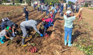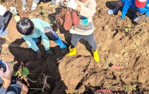 2025年10月19日 / 最終更新日時 : 2025年10月19日 fukuちゃん イベント 秋の里山での恒例のサツマイモ掘り(立沢里山) 今年も恒例のサツマイモ掘りを秋晴れの下で開催し、近隣の二つの子供会から総勢約70名の親子が参加してくれました。土を掘るたびに現れる大きなサツマイモに、子供たちは歓声をあげながら夢中に!芋が“釣れる”ように連なって出てくる様子に、驚きと笑顔があふれていました。 きっと家に帰ってサツマイモを味わうとき、子供たちは「自然ってすごい!」と感じてくれるはず。土にふれ、収穫の喜びを体験することで、自然の恵みのありがたさが心に残る…そんな素敵な時間になりました。 コメントを残す コメントをキャンセルコメントを投稿するにはログインしてください。