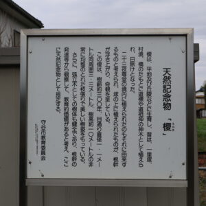 廿三夜尊堂内に植えられた樹齢300年と言われるエ ノキがあります。守谷の歴史を感じさせる巨木です。